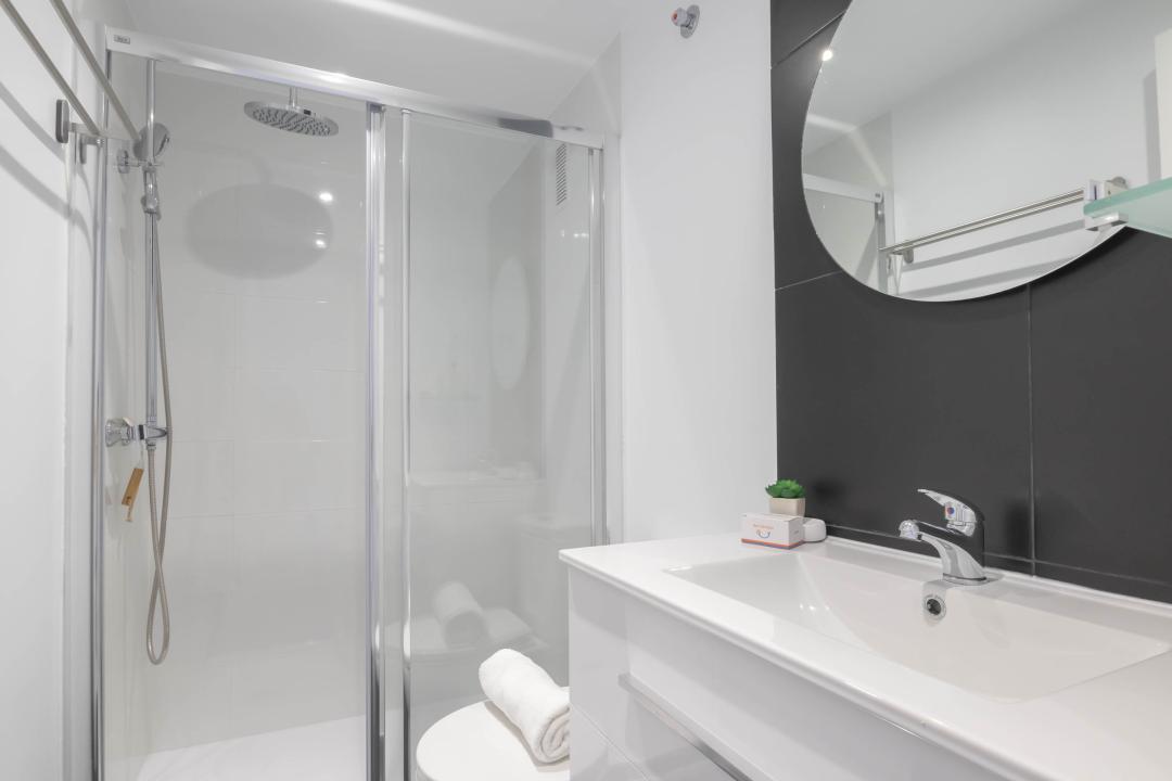 Baño 1: Un baño moderno con ducha y WC.